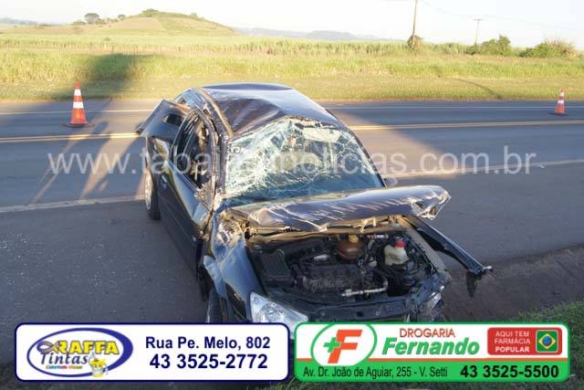 Por volta das 16 horas desta quinta 16, um Gm Classic placas de Santo Antonio da Platina acabou capotando após perder o controle em frente ao posto Pampa no km 09 da BR 153 em Jacarezinho