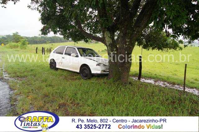 Na tarde desta segunda 28 por volta das 15 hs,  um VW Gol placas de Rondonópolis MT seguia pela PR 431 sentido Ribeirão Claro Jacarezinho quando após sair de uma curva no km 21, próximo a granja da Seara,  acabou perdendo o controle saiu da pista e bateu em uma árvore, segundo informações no Gol estavam três ocupantes e nenhum deles teria sofrido ferimentos.