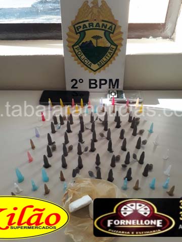 Na ultima quarta feira dia 28, em diligências sobre um casal traficando drogas na Vila Rubim em Cambará, a equipe da policia Militar composta pelos Soldados Adair, Tobias e Muriel, abordaram os suspeitos na casa onde moram e, com a devida autorização, realizaram buscas, sendo encontrada uma bolsa contendo grande quantidades de entorpecentes e demais petrechos utilizados para no narcotráfico.