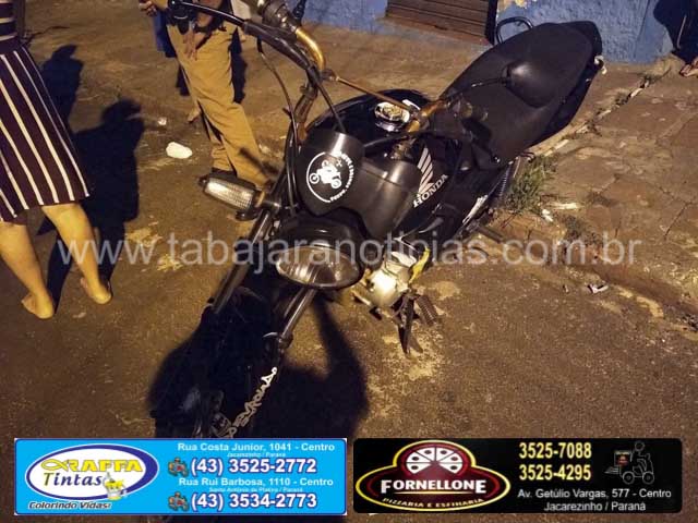 Na motocicleta seguiam o condutor e uma moça na garupa, ambos sofreram vários ferimentos e suspeita de fraturas na perna, sendo socorridos e encaminhados ao pronto socorro pela equipe dos Bombeiros.