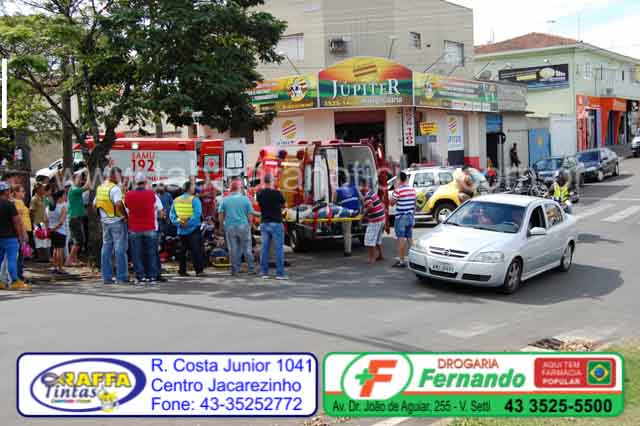 Um casal ficou ferido em um acidente envolvendo uma motoneta Honda e um GM Corsa ambos placas de Jacarezinho, na Avenida Getúlio Vargas no centro de Jacarezinho.
