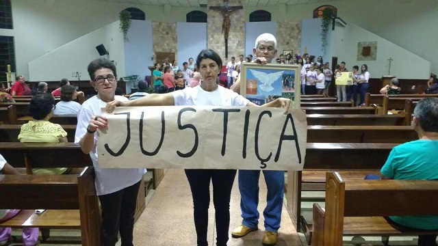 Ao termino da Santa Missa foi realizada uma via sacra dentro da Igreja, com faixas e cartazes pedindo uma resposta do acontecido por parte das autoridades.