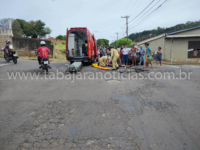 Um ciclista ficou ferido ao colidir contra um carro na Vila São Pedro em Jacarezinho.