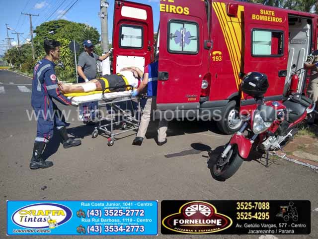 O acidente aconteceu no cruzamento da Avenida Getúlio Vargas com a Rua Padre Mello, na esquina do Auto Posto Jacaré I, e envolveu uma Moto Honda CB 300 placa de Jacarezinho e um GM Spin placas de São Paulo, de acordo com as informações dadas pelo motorista da Spin, ele seguia pela Avenida sentido asilo, quando no cruzamento por ser de fora achou que estaria com a preferencia e acabou colidindo com a moto que subia pela Padre Mello.