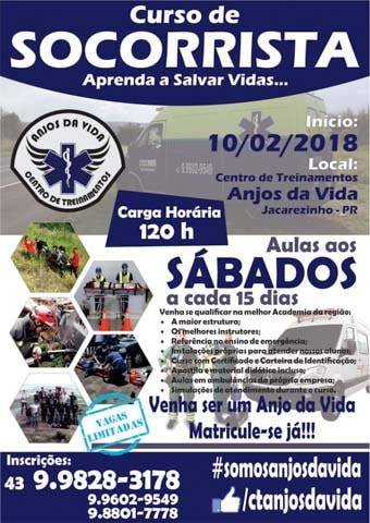 O Centro de Treinamentos Anjos da Vida esta com inscrições abertas para cursos na área de emergência, somos uma empresa referência na formação de profissionais nas áreas de emergências médicas e de combate a incêndios e estamos localizados na Cidade de Jacarezinho – PR.