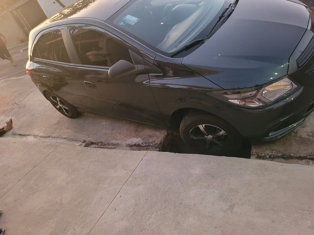 A motorista foi levar sua amiga até sua residência e quando foi estacionar, acabou caindo com o veiculo no buraco que de acordo com os moradores já esta aberto a vários meses e mesmo após varias reclamações e pedidos a prefeitura, nada foi feito, o local é movimentado e várias pessoas, entre elas crianças e idosos passam diariamente próximo do bueiro, correndo o risco de um acidente.