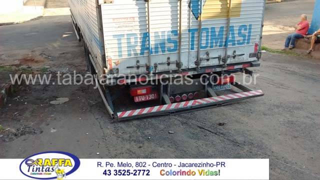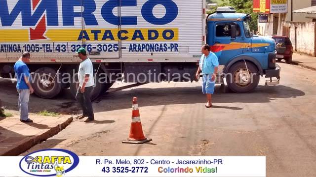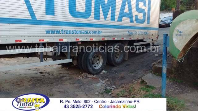 O problema acontece devido a uma grande valeta, quando foi feita a pavimentação da rua ficou uma depressão muito grande para escoamento de água e impede a passagem de caminhões pelo local, mas os motorista como não são de nossa cidade e desconhecem o problema e não á nenhuma sinalização informando o problema, acabam passando pelo transtorno e prejuízos
