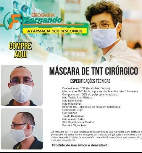 Drogaria Fernando comunica seus amigos e clientes que acaba de receber mascaras cirúrgicas.