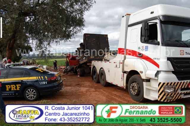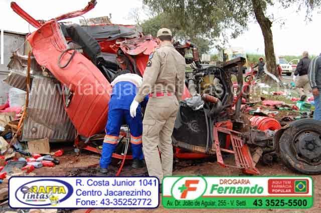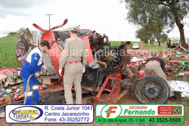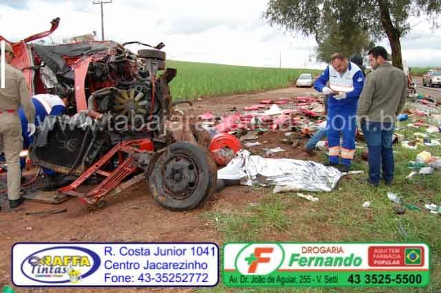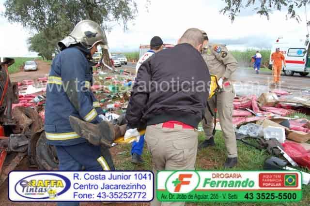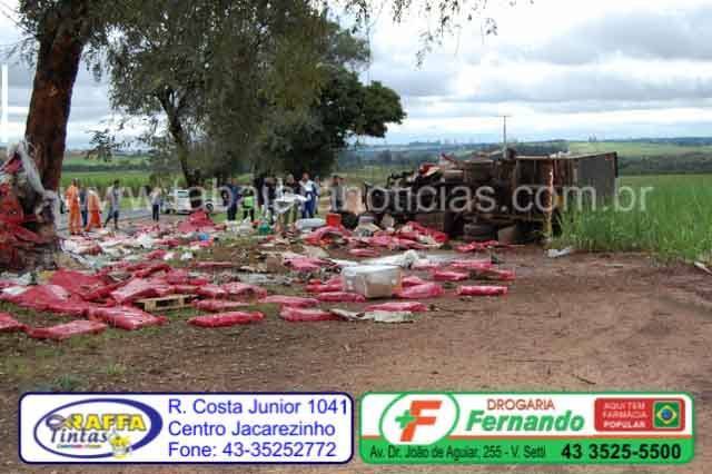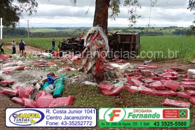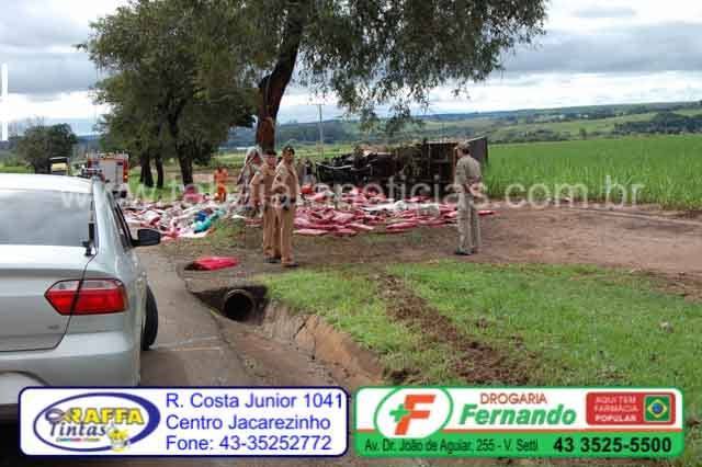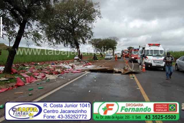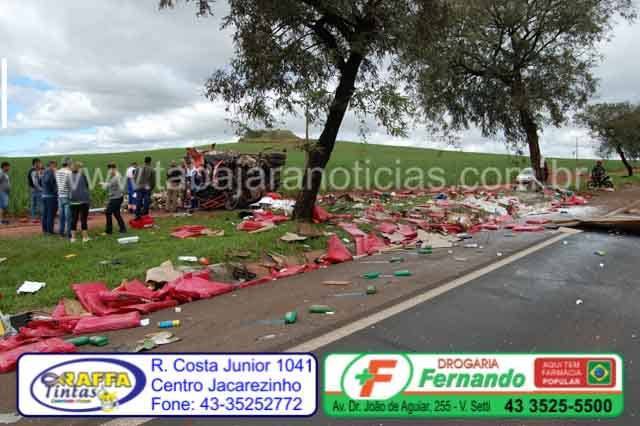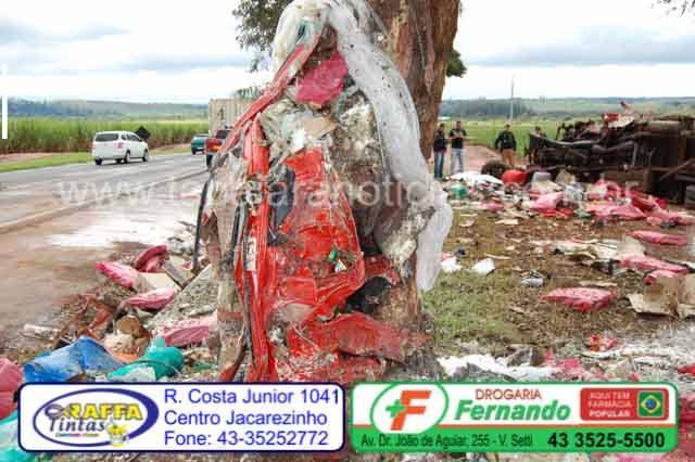 O acidente aconteceu por volta das 10:40, o caminhão Mercedes Bens 710, placas de Japira, carregado com produtos diversos, seguia sentido Ourinhos, quando no local um dos pneus dianteiros teria estourado, o motorista perdeu o controle saiu da pista bateu na canaleta e em seguida colidiu violentamente em uma arvore, a carga ficou espalhada por vários metros do local da batida.
