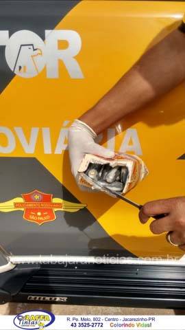 A Equipe de TÁTICO OSTENSIVO RODOVIÁRIO composta pelo CB Fábio, CB Galan e SD Oliveira em operação conjunta com Equipe TOR “A” Composta pelo SGT Santana, CB Belini e CB Junior, por volta das 11:00 hs, abordou no Km 455 da SP 270 o ônibus da viação ANDORINHA com itinerário Campo Grande/MS X SÃO Paulo e, durante fiscalização e entrevista em seus ocupantes, percebeu-se nervosismo em demasia dos ocupantes das poltronas 33 e 41, sendo que em revista pessoal logrou-se êxito em localizar em uma CX de suco de 1 LT, escondida ao lado da poltrona 33 que era ocupada pelo Sr. C. V. C. de 27 anos várias cápsulas de cocaína, sendo que o indivíduo acabou confessando que havia ingerido cápsulas com cocaína, não sabendo precisar a quantidade, ato contínuo foi abordado o outro indivíduo que também confessou q havia ingerido tais cápsulas, que indagados, informaram que ingeriram as drogas na Bolívia, precisamente em Puerto Quijarro, mas que não se conhecem e que levariam até o terminal Barra Funda em São Paulo, onde receberia a quantia de $ 500 (Quinhentos) Dólares pelo serviço, cada um. Diante do exposto, foi dada voz de prisão aos dois por ( TRÁFICO INTERNACIONAL DE DROGAS), sendo que após ser lido os Direitos Constitucionais, os dois foram conduzidos até o UPA de Ourinhos para expelirem o restante da droga e posteriormente serem apresentados na POLÍCIA FEDERAL de Marília.