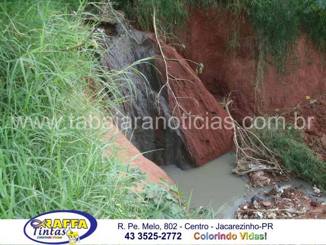 A alguns dias estivemos no bairro e registramos a grande erosão que se formou nos fundos do bairro e ameaça algumas residencias, problema que após 14 anos, voltou novamente, causando um verdadeiro pânico aos residentes da chácara Paraíso e aqueles que estão próximos a Rua Doutor Caldas. na época a grande cratera ameaçava romper a rede de esgoto, e agora isto aconteceu o buraco aumentou mais de 80 metros com as ultimas chuvas e nenhuma medida de contenção foi realizada no local, o esgoto está correndo a céu aberto causando mau cheiro e riscos de doenças, o que assusta os moradores principalmente com o mosquito da dengue que pode se procriar no local