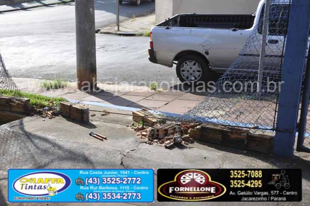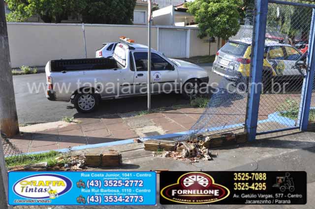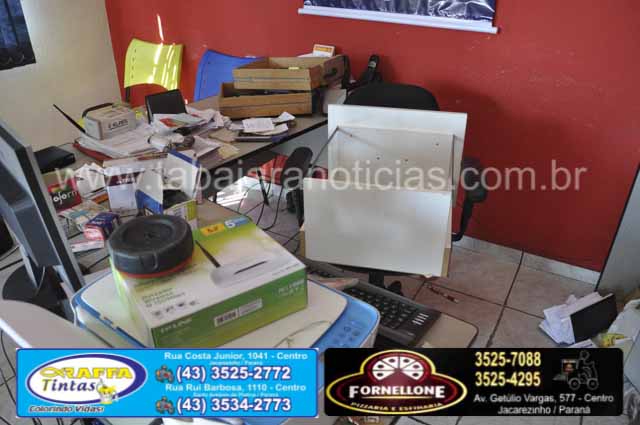 Os bandidos cortaram a grade, em seguida arrobaram a porta do escritório onde reviraram os armários e pegaram as chaves dos veículos, e fugiram saindo com a caminhonete pela abertura que fizeram na tela, na fuga acabaram esbarrando no poste que fica bem em frente do local.