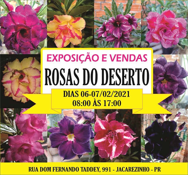 Acontece hoje sábado 06 e amanhã domingo 07, a FEIRA DE ROSAS DO DESERTO NA CIDADE DE JACAREZINHO/PR.