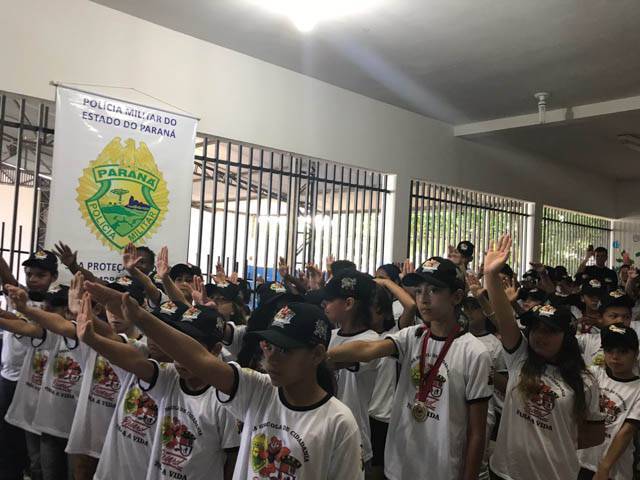 Ato contínuo tivemos a palavra de algumas das autoridades presentes, e logo após os alunos prestarão o Juramento frente ao Pavilhão Nacional, empunhado pelos Atiradores do TG 05-007 de Jacarezinho; as crianças repetiram em alto e bom som as palavras pronunciadas pelo seu Instrutor Sargento Príncipe; naquele momento estavam formados e ficaram aptos a receber seu certificado. Prosseguindo a Formatura, tivemos a entrega dos Diplomas a um aluno por Turma os quais representaram todos os seus colegas ao receber seu Certificado.