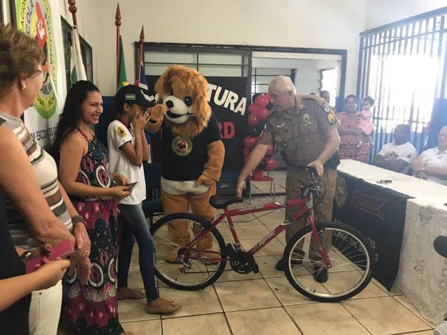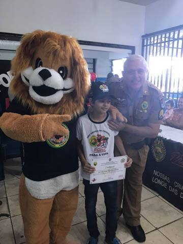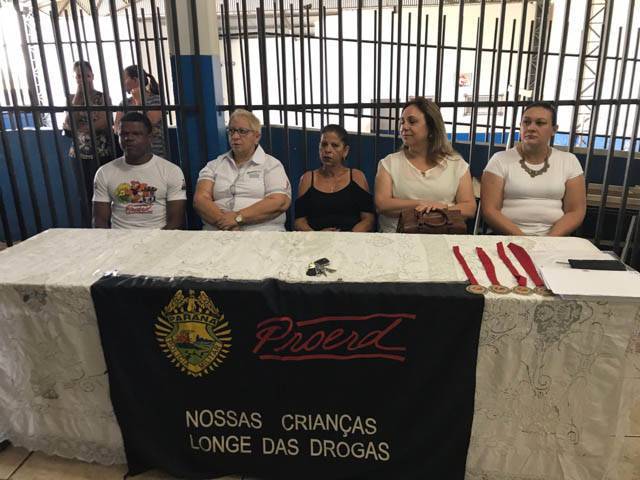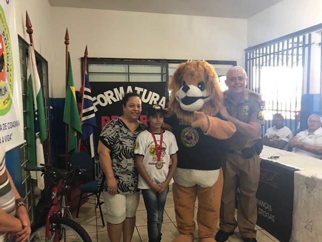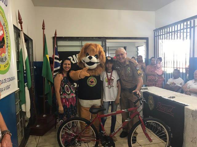 Tivemos então a execução do Hino Nacional; logo após foram premiadas as 04 melhores redação, uma por turma, e foram agraciadas com a Medalha Proerd as seguintes crianças: 5º A Nicole Almeida, 5º B Rayssa Souza Silva Franco, 5º C Natália Lucaneti e 5º D Lívia de Oliveira; tivemos a premiação para a aluna 1ª Colocada da Escola, que recebeu uma Lindíssima Bicicleta aro 26 de 18 marchas, e a Campeã foi: Rayssa Souza Silva Franco.