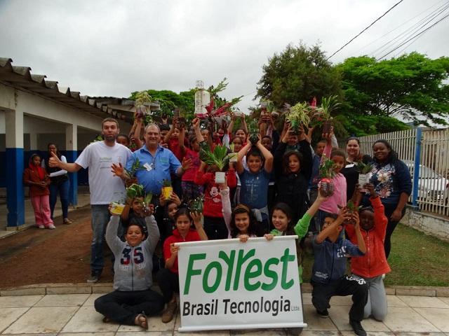 Uma vez por semana, a equipe da Forrest vai até a escola para desenvolver uma atividade com os alunos. Nesta semana, os estudantes realizaram o plantio de mais de 200 mudas de flores. “O principal objetivo é conscientizar as crianças para que elas possam contribuir com ações em prol de um futuro melhor.