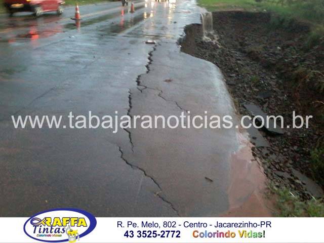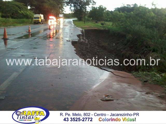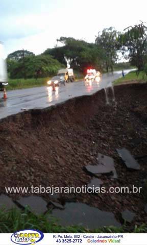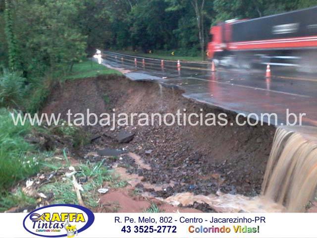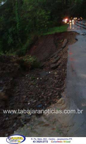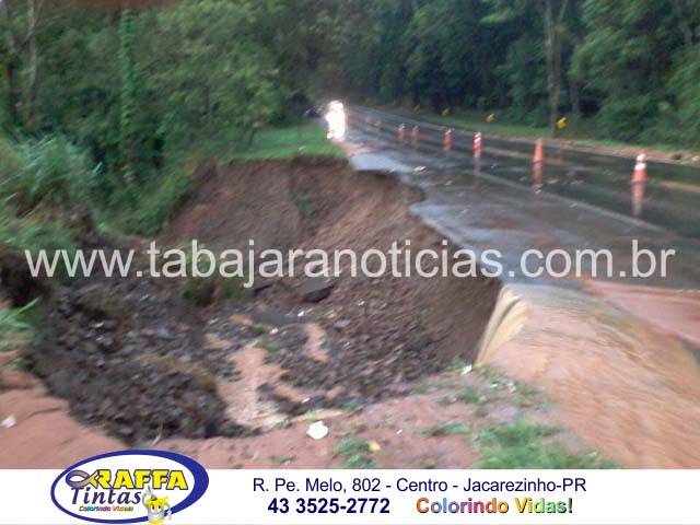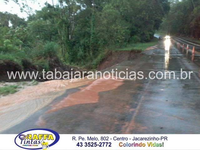 Na BR 153 uma encosta desabou levando parte do acostamento e uma parte da pista foi interditada no km 17, próximo ao Alambique, um grande buraco se formou no local, na tarde de hoje o buraco já foi tapado pela Econorte e o transito já flui normalmente no local