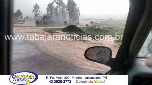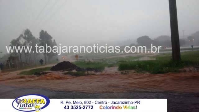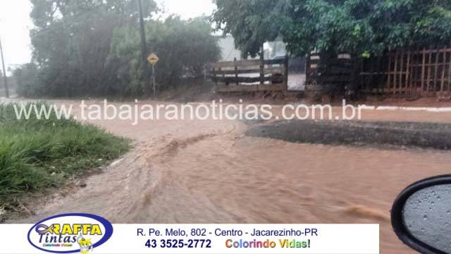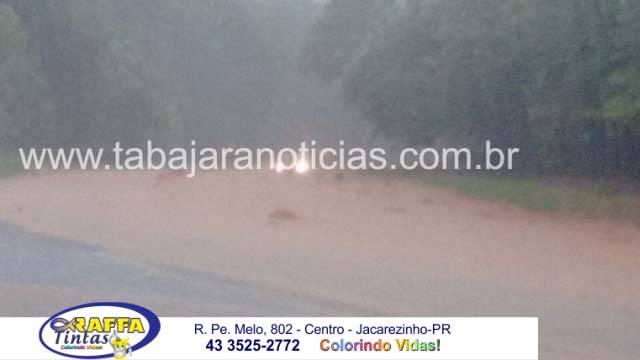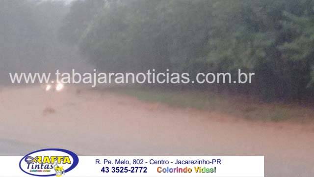 A forte chuva que caiu ontem em Jacarezinho causou vários estragos e prejuízos em várias partes do município