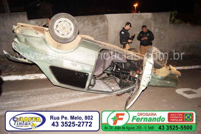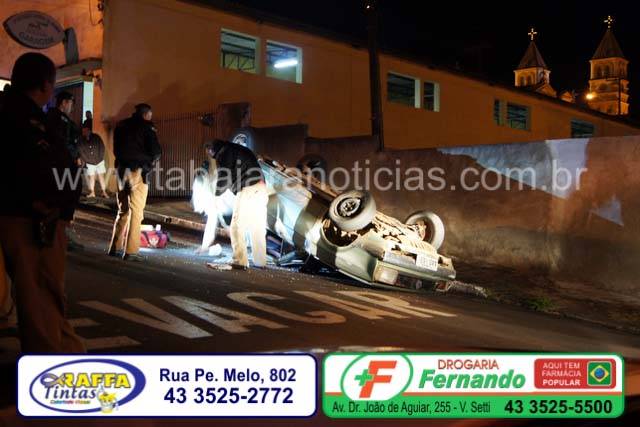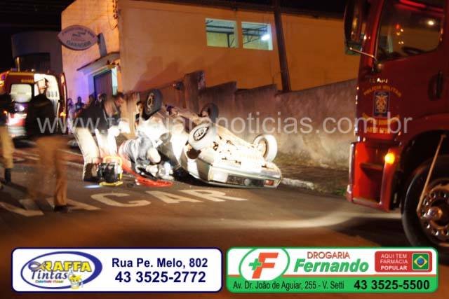 O motorista do Voiage acabou perdendo o controle da direção subiu na calçada, bateu em uma placa de sinalização e capotou em seguida, o motorista ficou com a mão presa em baixo do carro e foi preciso a equipe dos Bombeiros para retira-lo do veiculo,uma mulher que estava como passageira que não teve ferimentos, o rapaz que não teve o nome divulgado sofreu uma laceração na mão, foi socorrido pelos Bombeiros e encaminhado ao pronto socorro, onde ficou sob a guarda de uma equipe da Policia Militar para ser encaminhado a delegacia após ser liberado pelo médico