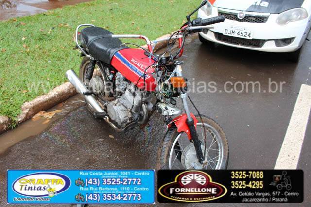 Na tarde desta Quinta Feira, 26/10/17, por volta das 12h30min, um grave acidente envolvendo suas motocicletas deixou duas pessoas feridas pela Avenida Domingos Carmelingo Caló nº 2932 defronte a praça da Vila Musa. A motocicleta Honda Super Sport 100c vermelha conduzida por L.P.M de 24 anos seguia sentido centro/bairro e colidiu com uma motocicleta Fan 150 de cor preta pilotada por uma jovem J.M.M de 19 anos. Com o impacto o condutor masculino sofreu ferimentos na perna, já a condutora da moto preta sofreu ferimentos graves na cabeça, sendo ambos socorridos pela Unidade de Resgate do Corpo de Bombeiros e pela equipe do SAMU. A Polícia Militar foi acionada onde foram registrados os fatos.