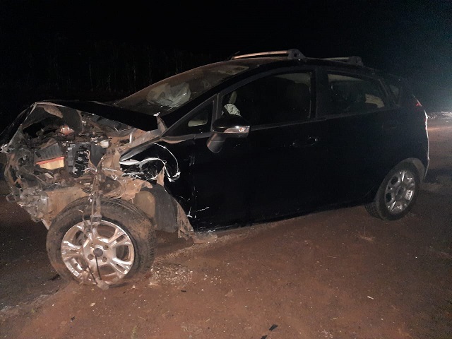Acidente aconteceu na noite desta terça-feira (18) e envolveu carro e camionete.