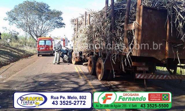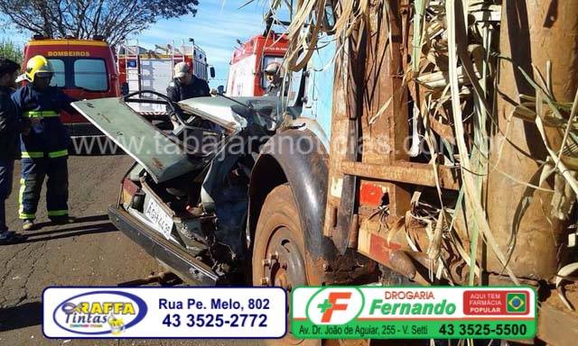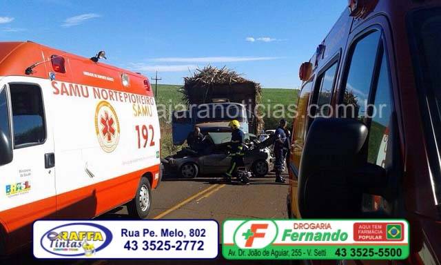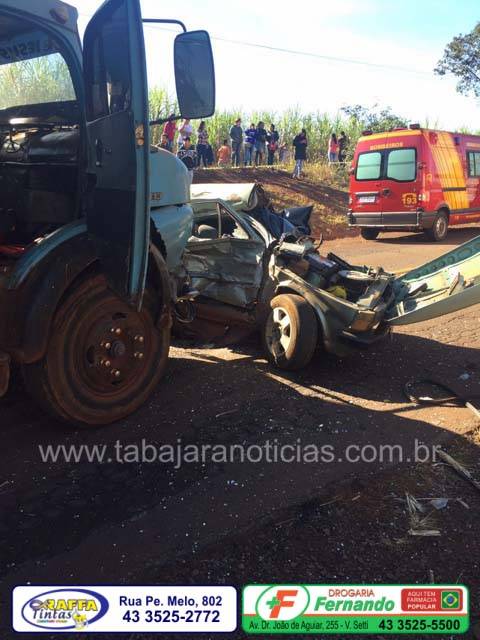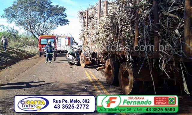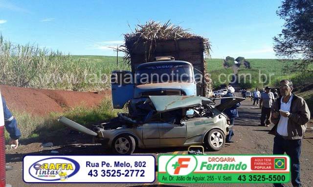 O acidente envolvendo um Fiat 147 e um caminhão Mercedes canavieiro, aconteceu na PR que liga Bandeirantes a Abatia, próximo a Integrada a dois quilômetros de Bandeirantes