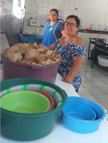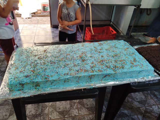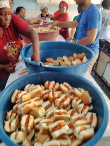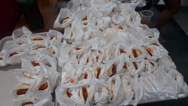Foram doados pelo Grupo Molini’s, 21 mil pãezinhos para cachorro quente, 400 quilos de salsichas, 250 fardos de refrigerantes e centenas de pirulitos.