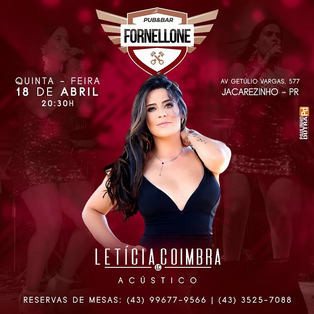Hoje véspera de feriado a Fornellone trás pra você o show com Letícia Coimbra ao vivo a partir das 20:30.