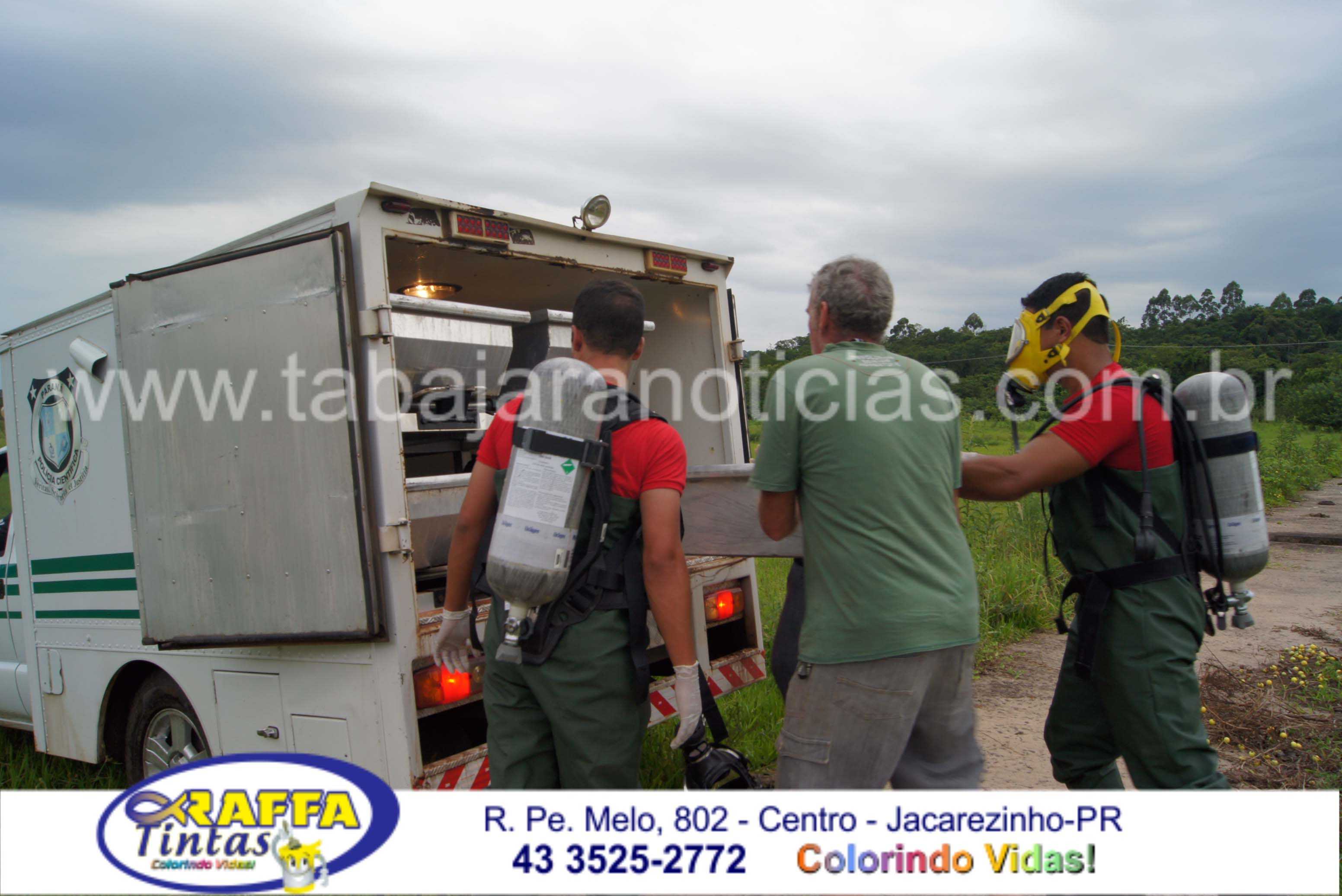 Os Policiais encontraram o corpo de um homem moreno claro , aparentando mais de 50 anos, e em seguida acionaram as Policias Cientifica, Civil e os Bombeiros para a retirada do corpo do local que era de difícil acesso