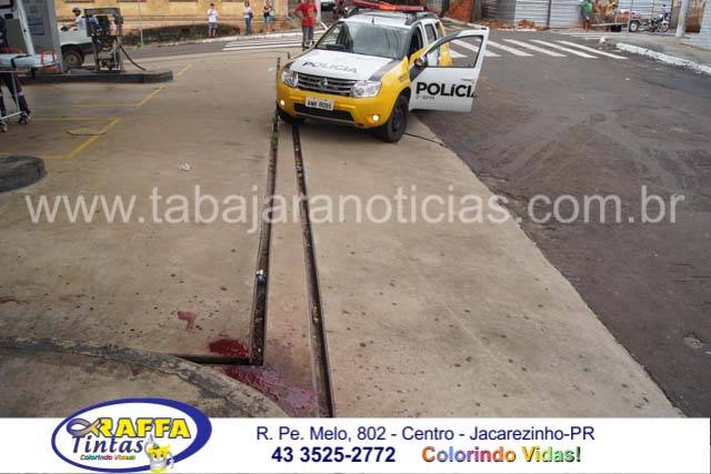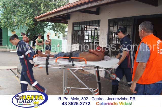 Na tarde desta sexta 15 por volta das 14:30 a equipe da policia Militar, foram chamados a comparecer no antigo posto Bremem na rua Parana onde segundo a denuncia um homem estaria acabando de quebrar o prédio e jogando os entulhos na porta de um comercio próximo, ao chegarem no local depararam se com várias manchas de sangre pelo local e dentro do posto um homem estava batendo com a cabeça na vidraça e sangrando muito, eles então o acalmaram e com a ajuda de um pano enrolaram os pulsos do rapas para estancar o sangramento até a chegada do Samu .