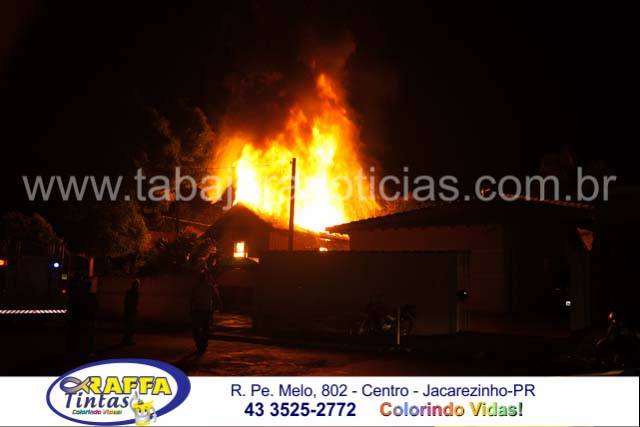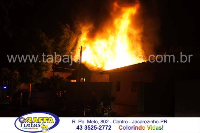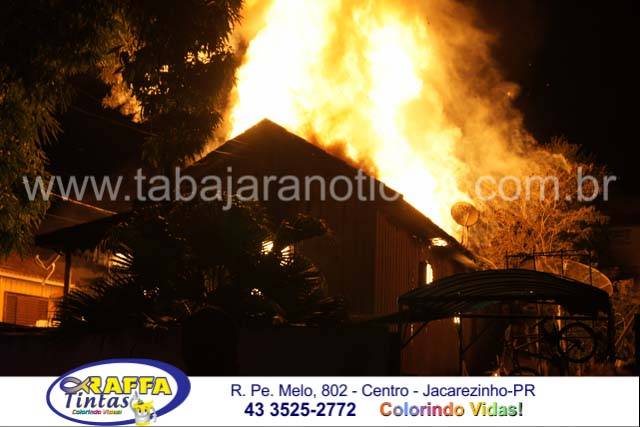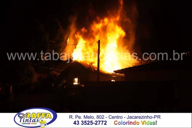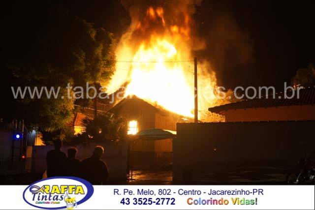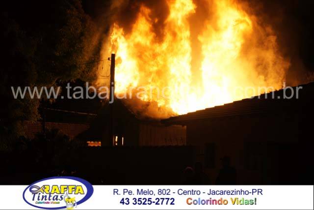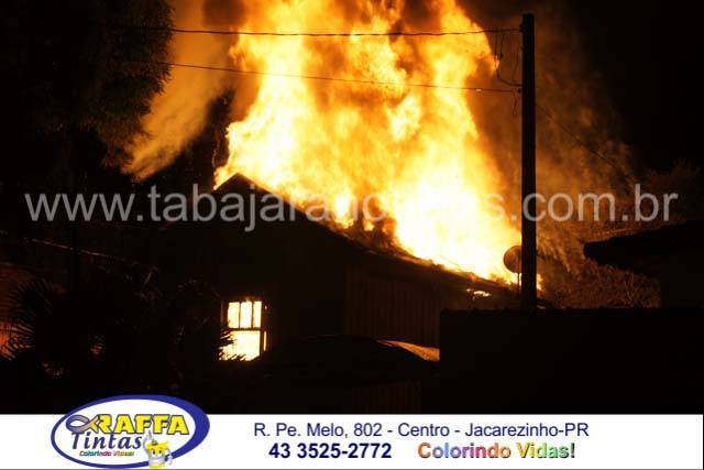 O incêndio aconteceu em uma residencia de madeira no inicio da noite e deu muito trabalho para as equipes dos Bombeiros, as chamas atingiram mais de dez metros de altura e consumiram toda a residencia, por muito pouco não atingiu as duas casas vizinhas e em uma delas o morador chegou a subir no telhado e com uma mangueira resfriou para que as chamas não a queimassem também , foram necessários dois caminhões dos Bombeiros para o combate as chamas
