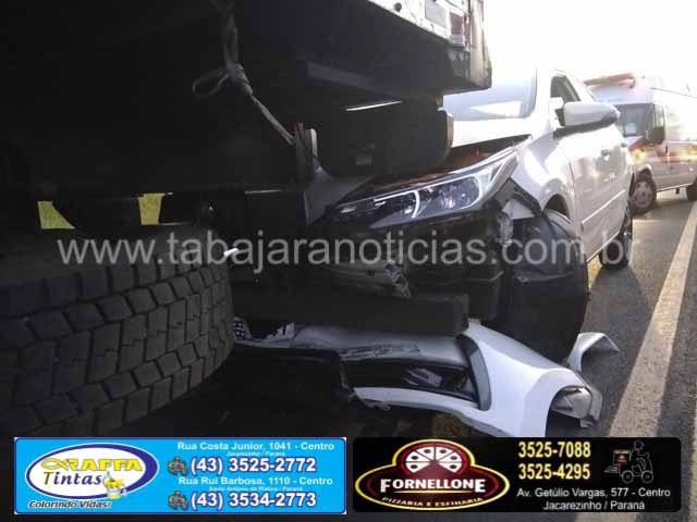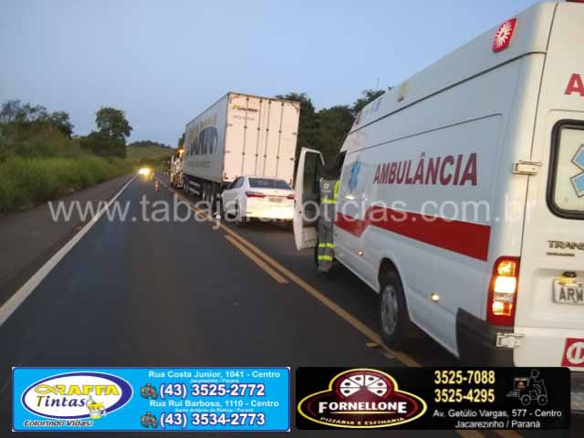 De acordo com as informações, uma carreta seguia sentido Jacarezinho, quando uma outra que seguia em sua frente parou bruscamente na pista, o motorista que seguia logo atras ainda freou mas acabou colidindo em sua traseira, logo atrás das duas carretas seguia o carro que também não conseguiu parar a tempo e acabou batendo na traseira da ultima carreta.