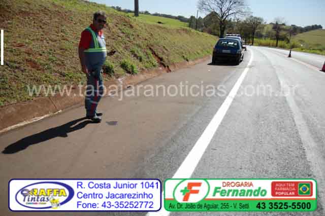 O acidente aconteceu no km 25, próximo a entrada do Monjolinho, segundo relatou o motorista ele seguia sentido Ourinhos, quando no termino da terceira faixa, uma carreta voltou para a faixa normal, um outro carro que seguia em sua frente freou bruscamente, o obrigando a também frear, com a freada o carro perdeu o controle, rodou atravessou a pista e acabou batendo em um barranco no sentido contrário da rodovia.