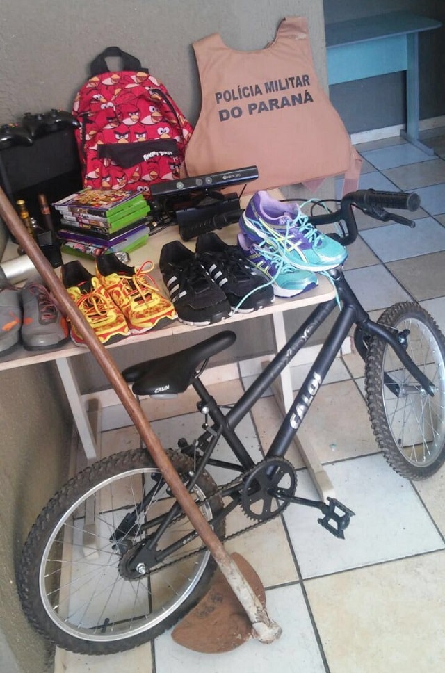 Com ele foi encontrado dentro de uma mochila um vídeo game e jogos, ao ser indagado sobre os demais produtos do ilícito ele informou estar em sua casa, onde os policiais recuperaram o restante dos produtos furtados.
