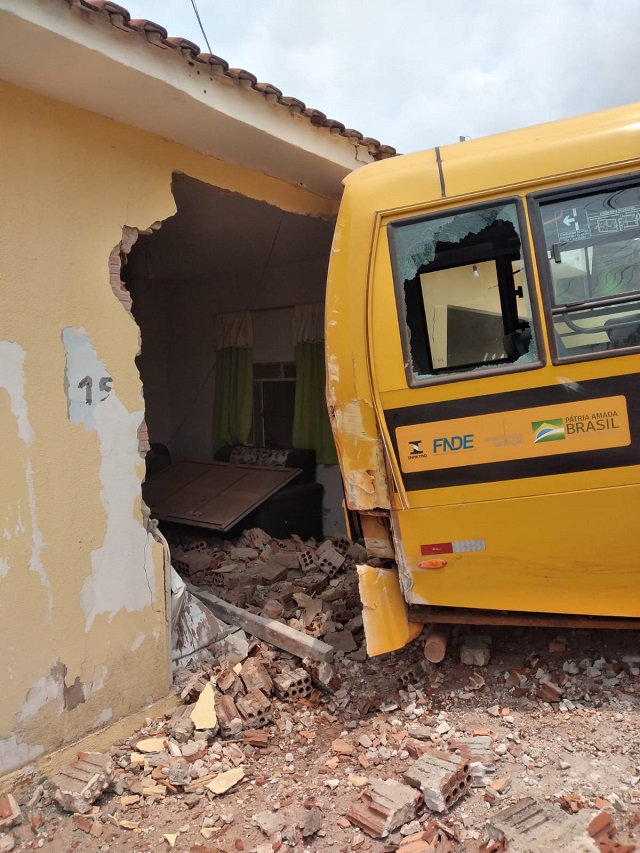 Micro ônibus da prefeitura desce sozinho de ré e invade residência em Jacarezinho.