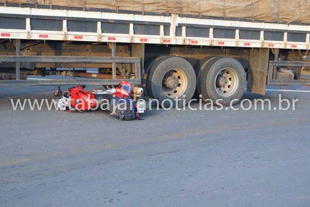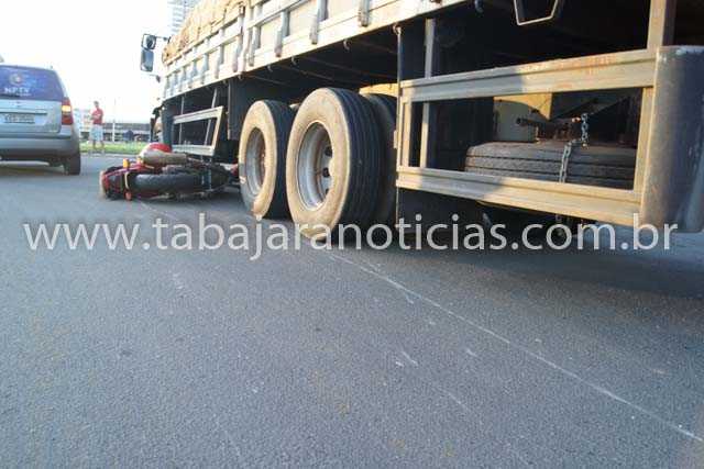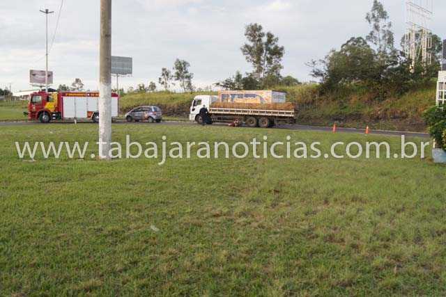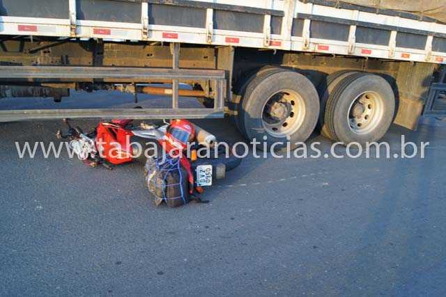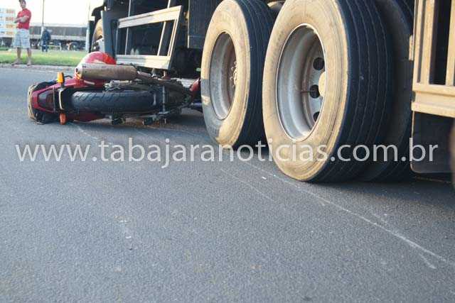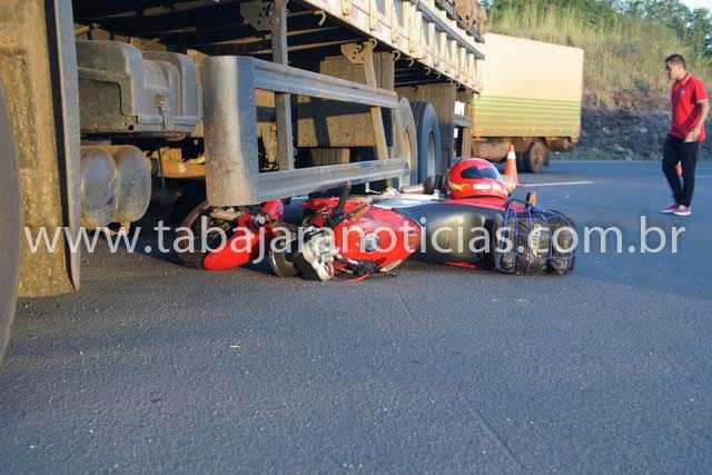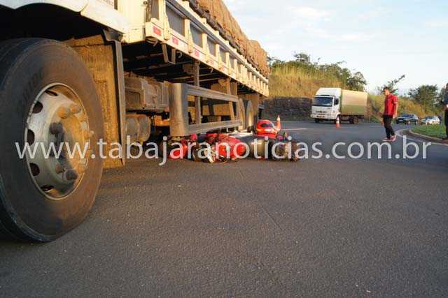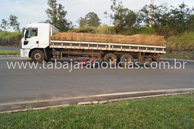 Segundo informou o condutor do caminhão ele vinha sentido ao posto quando ao fazer a conversão para a esquerda no trevo o motociclista tentou a ultrapassagem e não deu tempo e quando o motorista do caminhão percebeu a moto já estava em baixo do mesmo