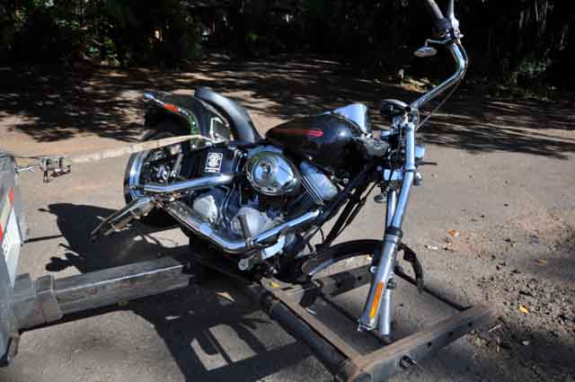 Um motociclista ficou ferido ao se envolver em um acidente entre uma motocicleta Harley-Davidson e uma carreta canavieira.