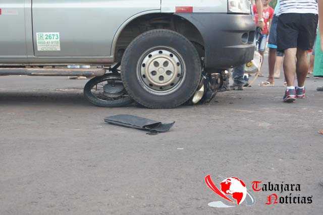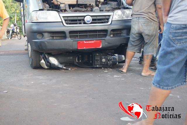 MOTOCICLETA VAI PARAR EMBAIXO DE VAN APÓS ACIDENTE