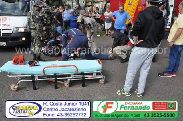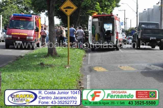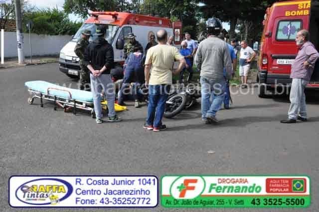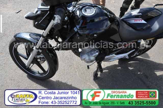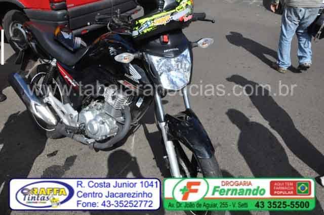 Um motociclista ficou ferido em um acidente envolvendo uma Honda Titan e um GM Classic, ambos placas de Jacarezinho.