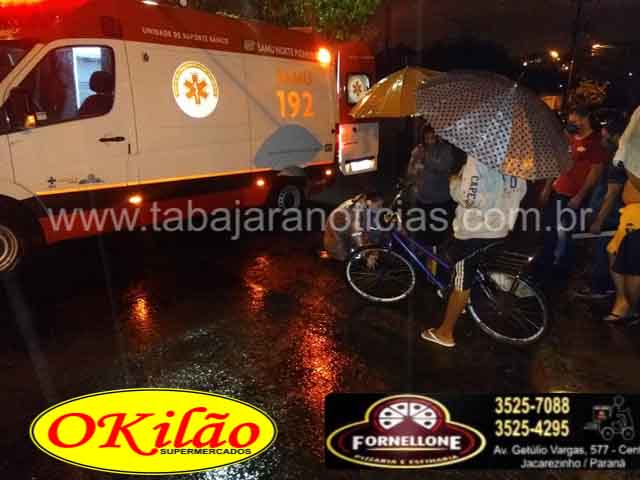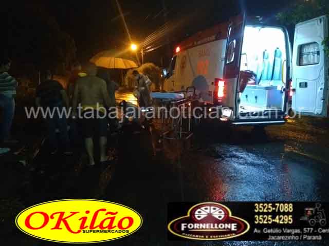 Com o impacto o motociclista foi arremessado ao solo, ele foi socorrido e encaminhado ao pronto socorro pela equipe do Samu, com ferimentos leves, chovia na hora do acidente, o motorista do carro permaneceu no local e prestou todos os socorros possíveis até a chagada da equipe de socorro.