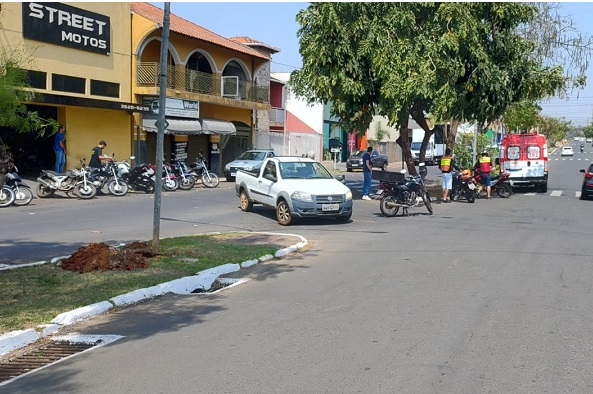 O acidente envolveu uma motocicleta Honda Titan e uma Pick-up Fiat Strada, de acordo com as informações colhidas no local, os dois veículos seguiam pela AV., sentido centro bairro, quando no local a Fiat Strada tentou realizar a conversão a esquerda e os dois acabaram colidindo, com o impacto o motociclista foi arremessado ao solo, ele foi socorrido pela equipe do Samu e encaminhado ao pronto socorro com ferimentos moderados, entre eles um corte contuso no pé.