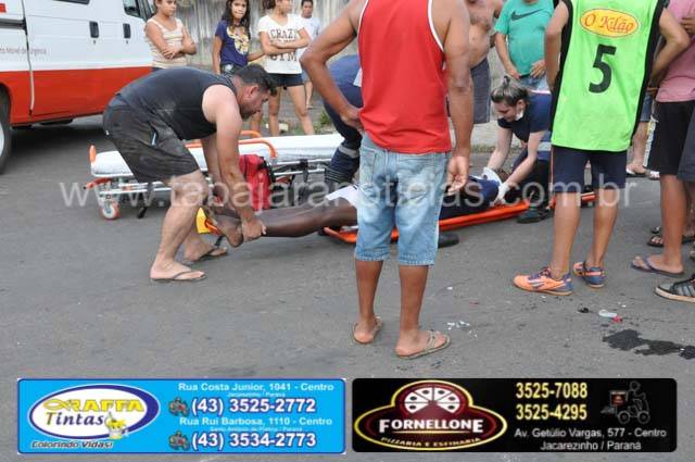 Motociclista fica ferido em acidente entre moto e caminhão na Vila São Pedro em Jacarezinho
