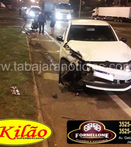 O carro acabou colidindo com a moto e o motociclista foi arremessado na pista, sendo socorrido pelas equipes do Samu e Bombeiros com o apoio dos socorristas Anderson e Franciela, da Econorte e encaminhado ao pronto socorro com ferimentos leves, a condutora do golf não teve ferimentos, as equipes da PRF estiveram no local e tomaram as providencias.