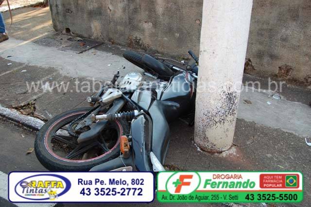 Uma pessoa ficou ferida em um acidente ocorrido na manhã desta quarta 17, na Alameda Padre Magno na esquina do Núcleo de Ensino no centro de Jacarezinho, envolvendo uma motocicleta Suzuki e um Renault Logam.
