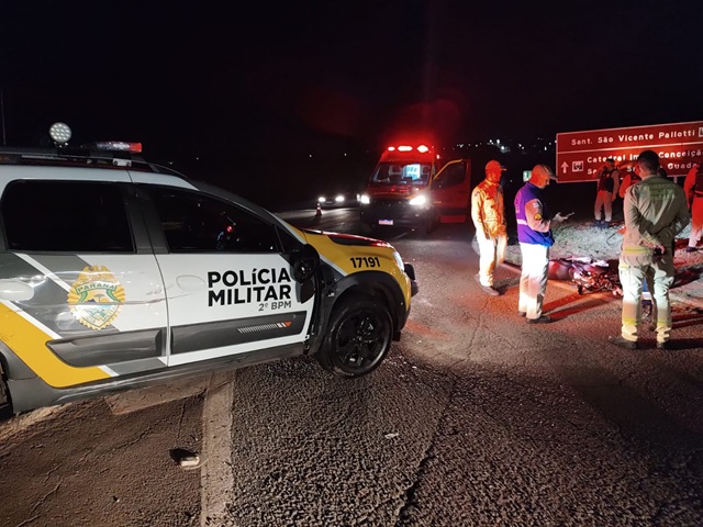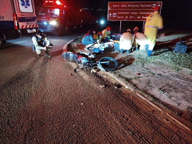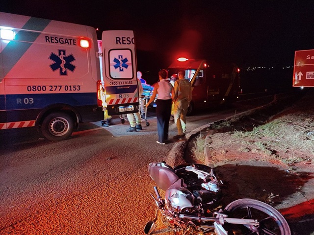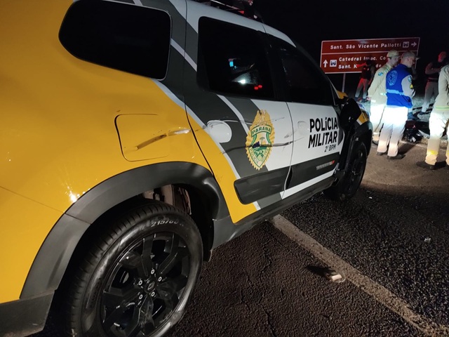 O acidente aconteceu por volta das 21h50, no km 19 da BR-153, próximo à passarela do bairro Aeroporto, e envolveu uma motocicleta Honda 160 e uma viatura da PM do município.