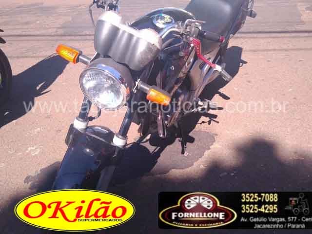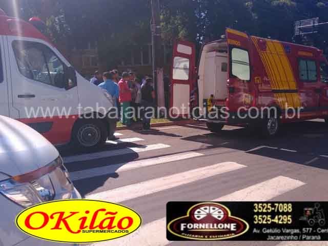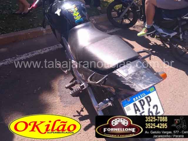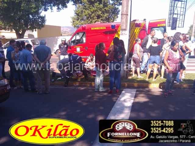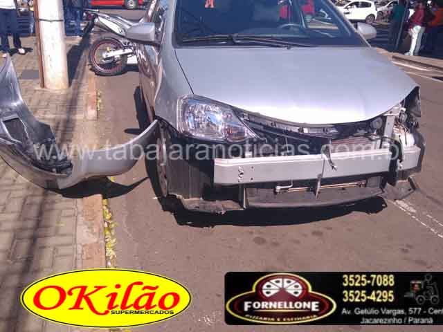 Um acidente envolvendo um Toyota Etios placas de Santo Antonio da Platina e uma moto Honda Twister, deixou uma pessoa gravemente ferida, na Avenida Getúlio Vargas, no cruzamento com a Rua Coronel Batista, na esquina da Prefeitura, no centro de Jacarezinho.
