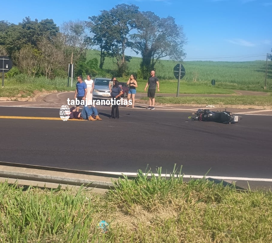 O acidente aconteceu na manhã deste domingo 29, no km 24 da BR 153 e envolveu uma motocicleta e um carro HB 20, de acordo com as informações o motociclista seguia pela BR no sentido Santo Antônio, quando a motorista do carro que seguia pela PR 431, tentou cruzar a BR e acabou entrando na frente da moto, oo motociclista mesmo estando em baixa velocidade, não  teve tempo de evitar a colisão.