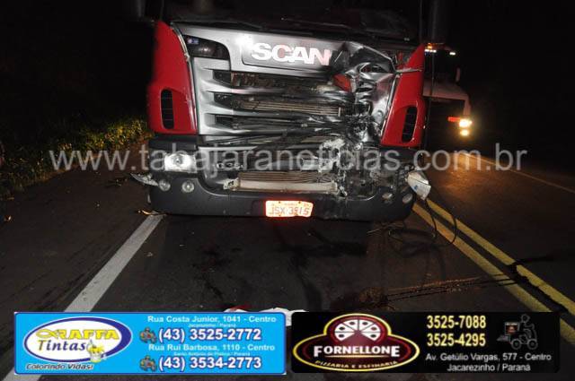 Gelson Borges de 27 anos que pilotava a moto, morador da área rural de Joaquim Távora, teve morte instantânea, seu corpo foi levado ao IML de Jacarezinho, Mauro Sergio Martins Pereira de 57 anos, motorista da carreta não teve ferimentos.