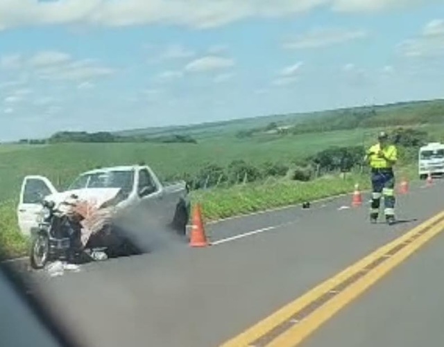 No mesmo sentido seguia uma caminhonete Fiat/Strada Working, que acabou colidindo violentamente na traseira da motocicleta. Com o impacto, o motociclista foi arremessado contra o para-brisa da caminhonete.