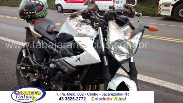 Por volta das 16 hs deste domingo 22 um acidente envolvendo um motocicleta XJ6 placas de Sorocaba, aconteceu no km 21 da BR 153 próximo ao trevo da Vila Rosa em Jacarezinho